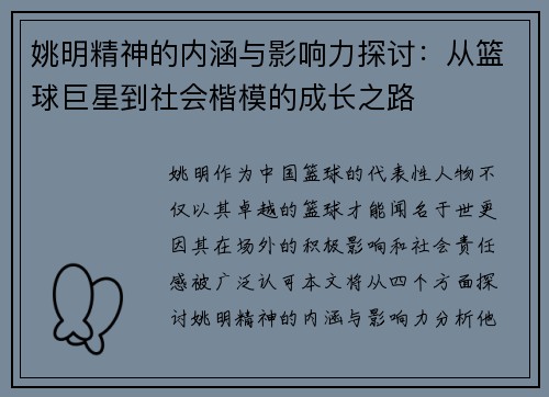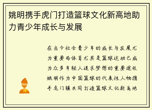 在这篇文章中,我们将带领读者共同体验试穿姚明亲自设计的篮球鞋的奇妙之旅。作为中国篮球的传奇人物,姚明不仅在球场上展现了巨人的风采,还在运动鞋设计领域留下了深刻印记。本文将从四个方面深入探讨这些篮球鞋所带来的独特体验,包括其卓越的设计理念、出色的舒适性、强大的支撑性能以及与篮球运动结合的实用性。每一个方面都将详细描述如何通过这双鞋感受到力量与舒适相融合的完美平衡,以及它们如何帮助球员提升表现,享受更...