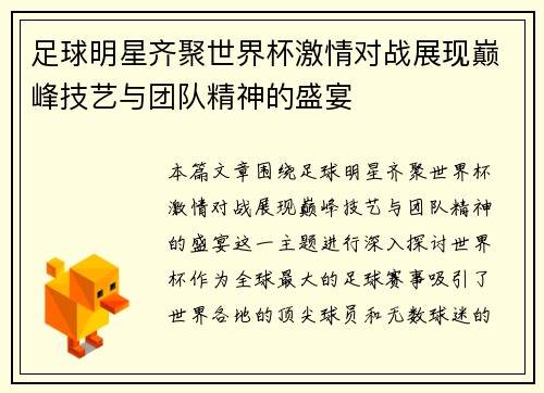 在当今体育世界中,足球以其独特的魅力吸引着无数球迷。芝加哥火焰与辛辛那之间的激烈对决正是这种魅力的具体体现。这场比赛不仅展示了球队之间的技术较量,更深入地反映了团队精神和合作的重要性。文章将从四个方面探讨这场对决如何揭示足球的魅力以及团队精神的完美结合,包括比赛中的战术运用、球员之间的默契配合、观众文化与氛围以及比赛带来的社会影响。每一个方面都将通过具体事例和分析,展现足球这项运动所蕴含的深刻内涵...